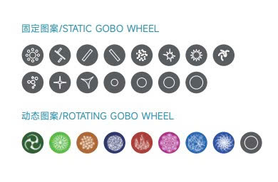- Static Gobos: 11 + 4 open